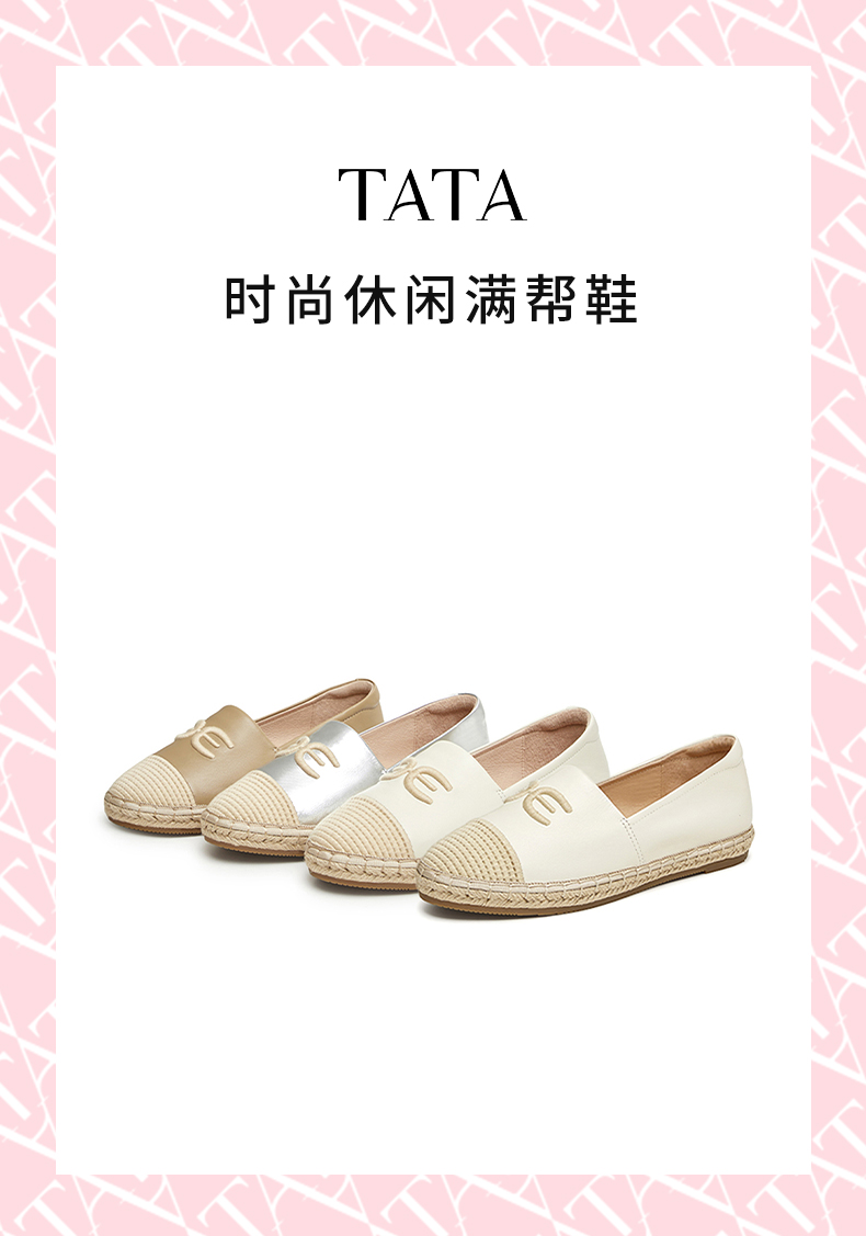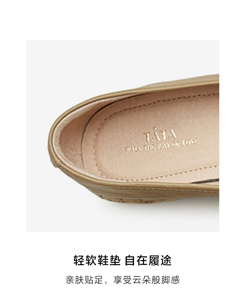 • TATA/他她2024夏时尚简约休闲风平跟圆头女鞋单鞋DWCL1BA4