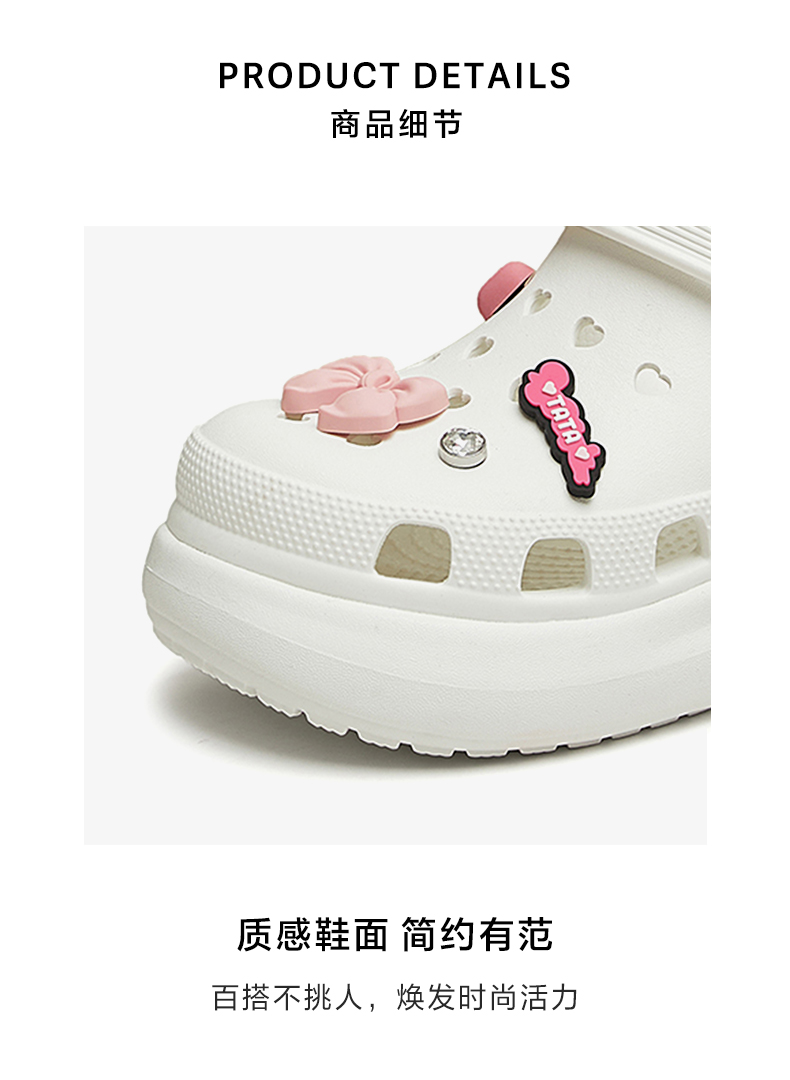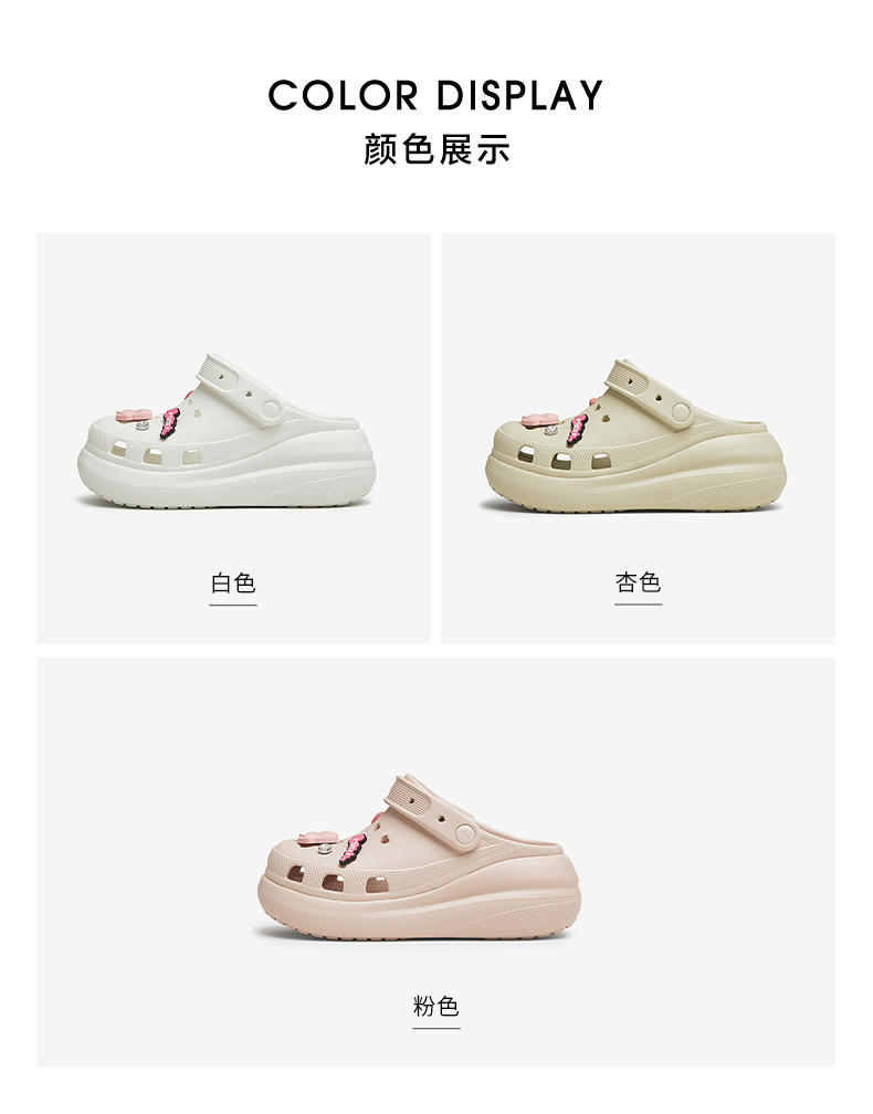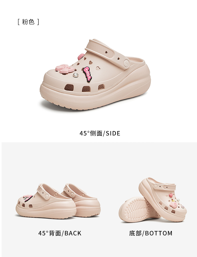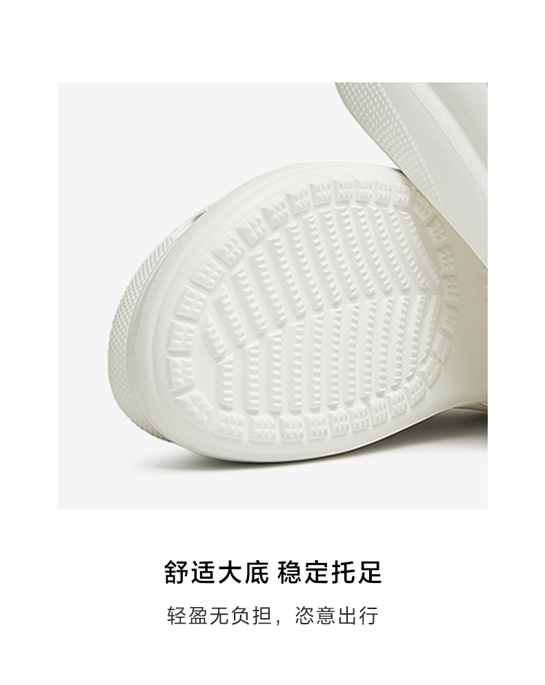 | 鞋头款式:圆头 | 鞋底材质:EVA | 鞋面图案:纯色 | 鞋跟形状:厚底 | 鞋面材质:EVA |