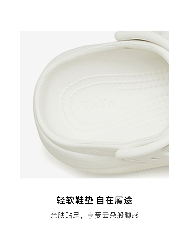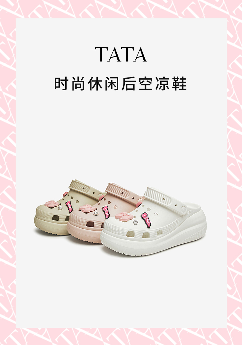 他她(Tata),品牌成立于2003年,致力为都市年轻人群提供时尚潮流、具有性价比的鞋履产品。十五年来“踏踏”的着地声,寓意都市白领元气满满的生活,如时尚“伴履”的TATA一直陪伴左右、伴随走出TATA的时尚步伐。2017年TATA美丽蜕变,TATA STAR元素的加入预示品牌将成为闪亮、前端的时尚鞋履品牌。
