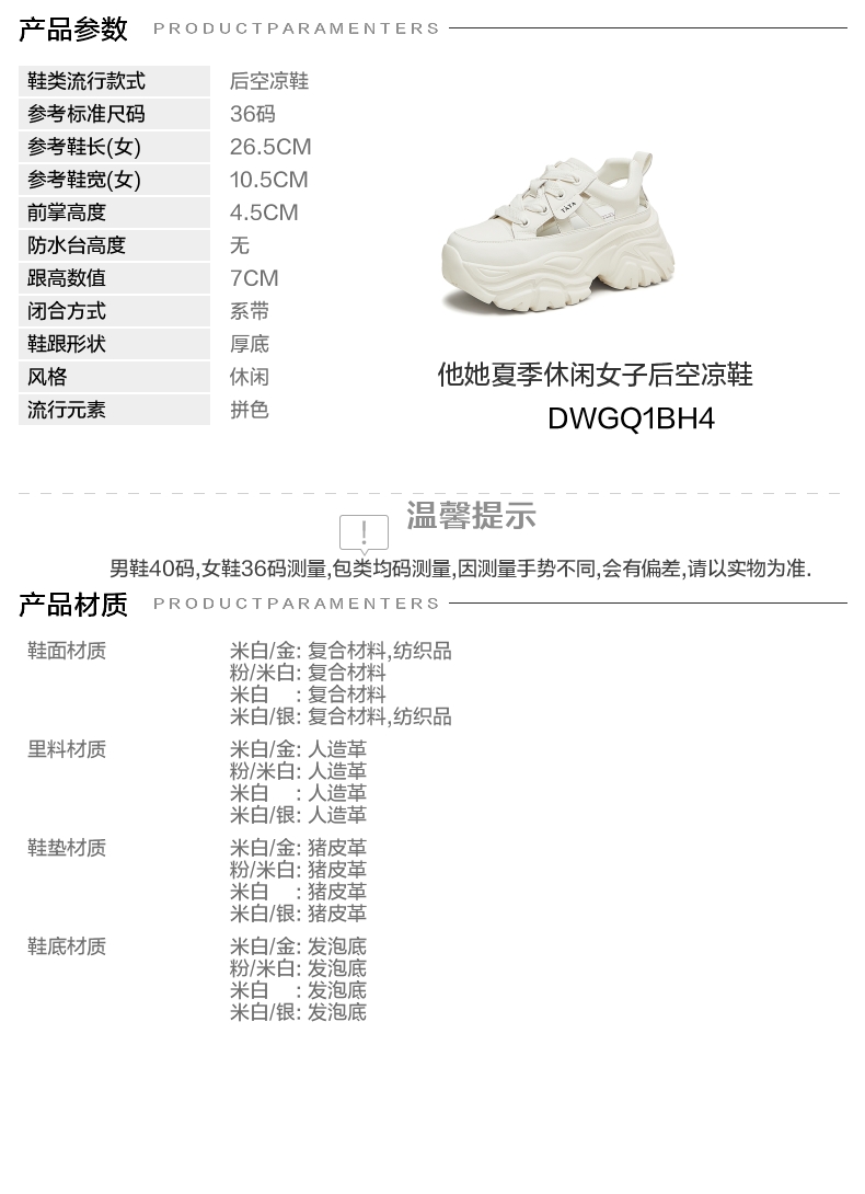 | 前掌高度:4.5CM | 皮质特征:软面皮 | 销售季:2024年夏季 | 防水台高度:无 |