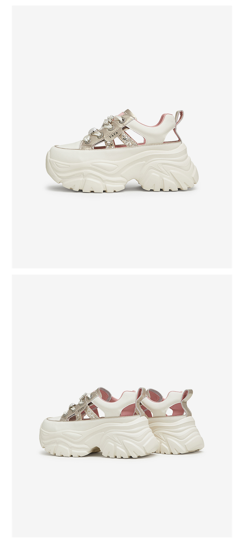 他她(Tata),品牌成立于2003年,致力为都市年轻人群提供时尚潮流、具有性价比的鞋履产品。十五年来“踏踏”的着地声,寓意都市白领元气满满的生活,如时尚“伴履”的TATA一直陪伴左右、伴随走出TATA的时尚步伐。2017年TATA美丽蜕变,TATA STAR元素的加入预示品牌将成为闪亮、前端的时尚鞋履品牌。