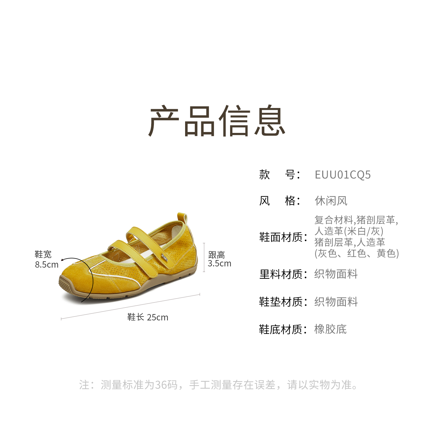 | 里料材质:织物面料 | 上市时间:2025年秋季 | 制鞋工艺:胶贴皮鞋 | 款式季节:秋季 | 鞋垫材质:织物面料 |