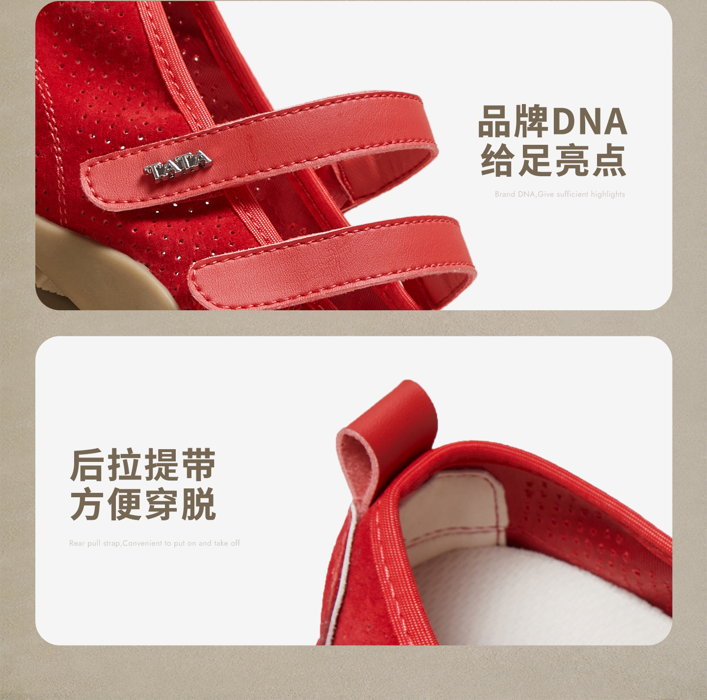 他她(Tata),品牌成立于2003年,致力为都市年轻人群提供时尚潮流、具有性价比的鞋履产品。十五年来“踏踏”的着地声,寓意都市白领元气满满的生活,如时尚“伴履”的TATA一直陪伴左右、伴随走出TATA的时尚步伐。2017年TATA美丽蜕变,TATA STAR元素的加入预示品牌将成为闪亮、前端的时尚鞋履品牌。