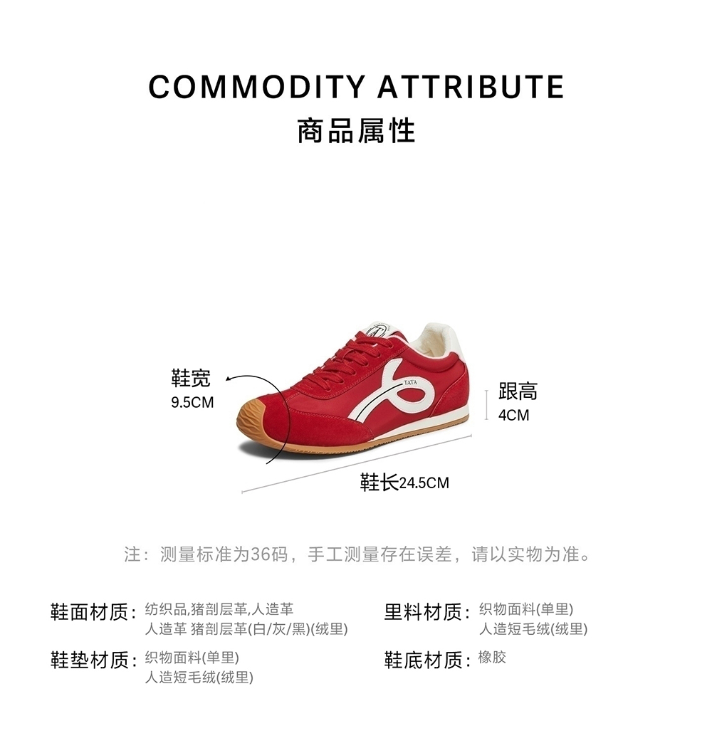 | 鞋帮:低帮 | 鞋底材质:橡胶 | 内增高:2.5CM | 鞋面材质:人造革猪剖层革纺织品 | 闭合方式:系带 |