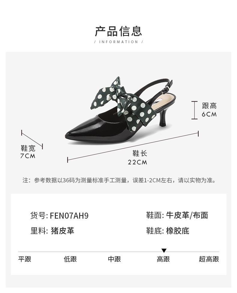 | 鞋面图案:纯色 | 鞋跟形状:细跟 | 参考鞋长(女):22CM | 流行元素:圆点蝴蝶结 | 参考鞋宽(女):7CM |