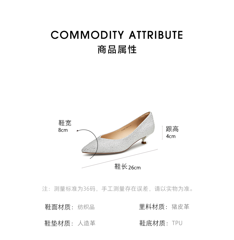| 风格:正装 | 跟高数值:4CM | 色系:银色 | 配跟:有 | 性别:女子 |