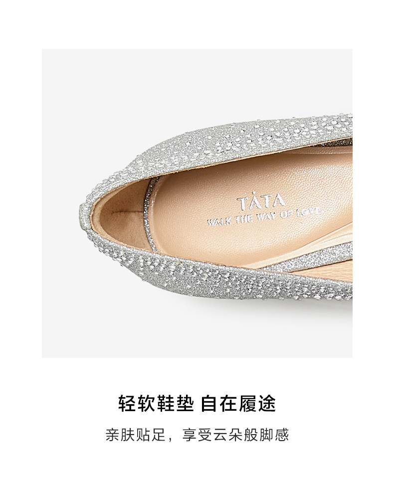 他她(Tata),品牌成立于2003年,致力为都市年轻人群提供时尚潮流、具有性价比的鞋履产品。十五年来“踏踏”的着地声,寓意都市白领元气满满的生活,如时尚“伴履”的TATA一直陪伴左右、伴随走出TATA的时尚步伐。2017年TATA美丽蜕变,TATA STAR元素的加入预示品牌将成为闪亮、前端的时尚鞋履品牌。