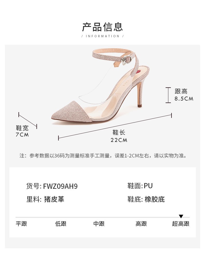 | 流行元素:亮片拼接 | 36码鞋长参考(女):22CM | 36码鞋宽参考(女):7CM | 闭合方式:搭扣 | 风格:OL通勤 |