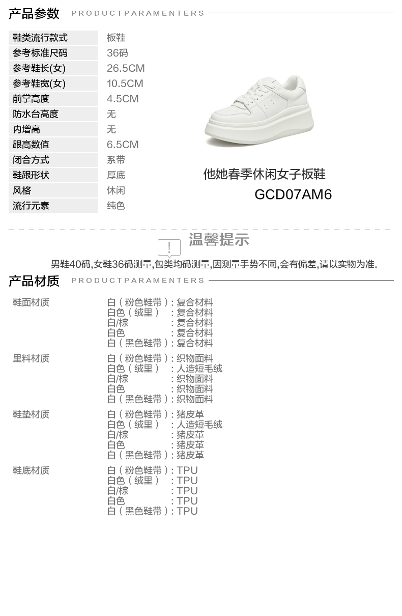 | 鞋跟形状:厚底 | 参考鞋长(女):26.5CM | 流行元素:纯色 | 参考鞋宽(女):10.5CM | 风格:休闲 |