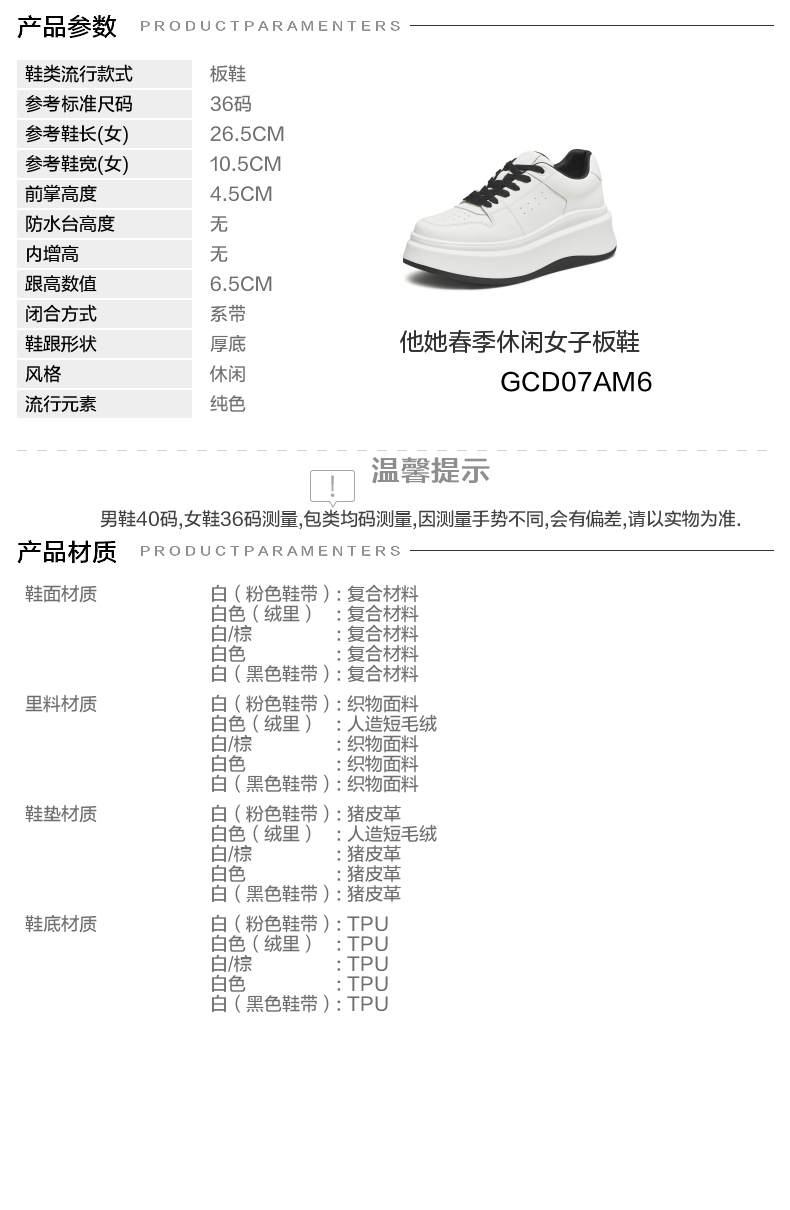 | 鞋跟形状:厚底 | 参考鞋长(女):26.5CM | 流行元素:纯色 | 参考鞋宽(女):10.5CM | 风格:休闲 |