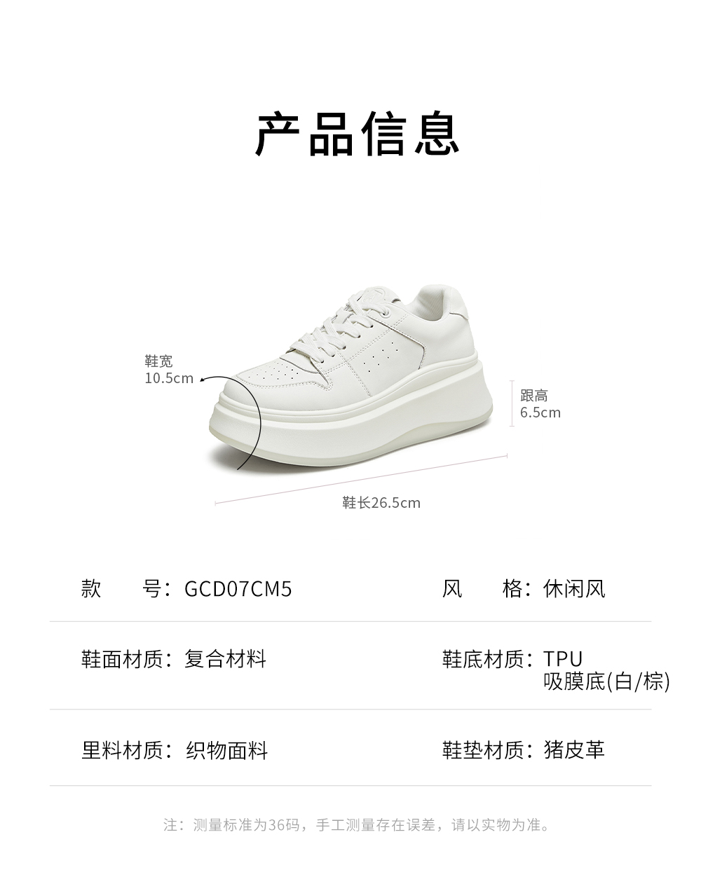 鞋跟形状:厚底 参考鞋长(女):26.5CM 流行元素:纯色 参考鞋宽(女):10.5CM 风格:休闲