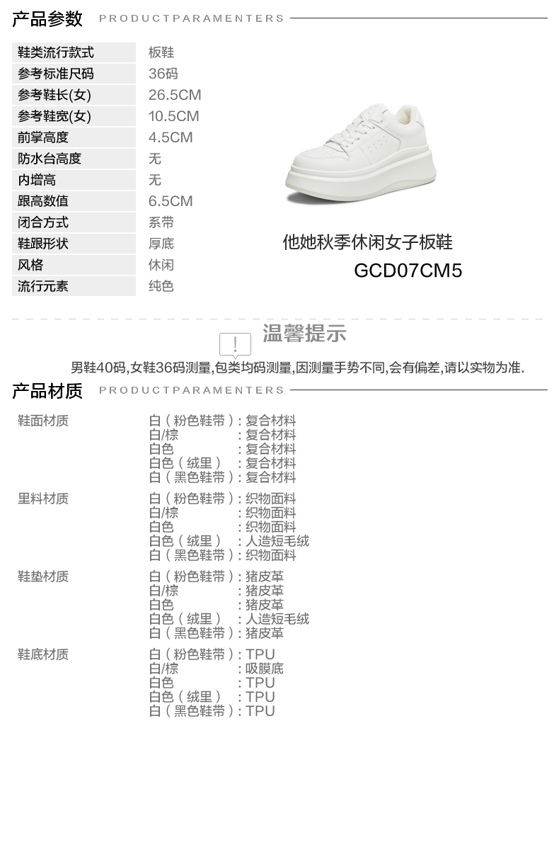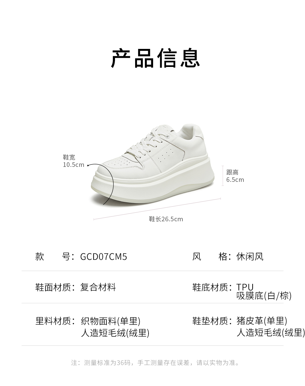 | 鞋跟形状:厚底 | 参考鞋长(女):26.5CM | 流行元素:纯色 | 参考鞋宽(女):10.5CM | 风格:休闲 |