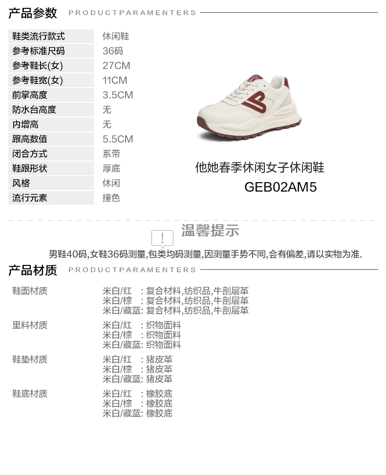 | 鞋跟形状:厚底 | 参考鞋长(女):27CM | 流行元素:撞色 | 参考鞋宽(女):11CM | 风格:休闲 |