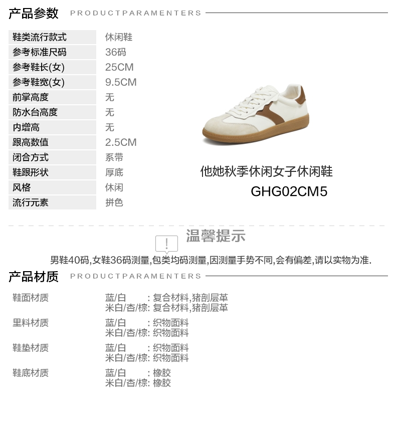 | 闭合方式:系带 | 风格:休闲 | 色系:米白 | 跟高数值:2.5CM | 配跟:无 |