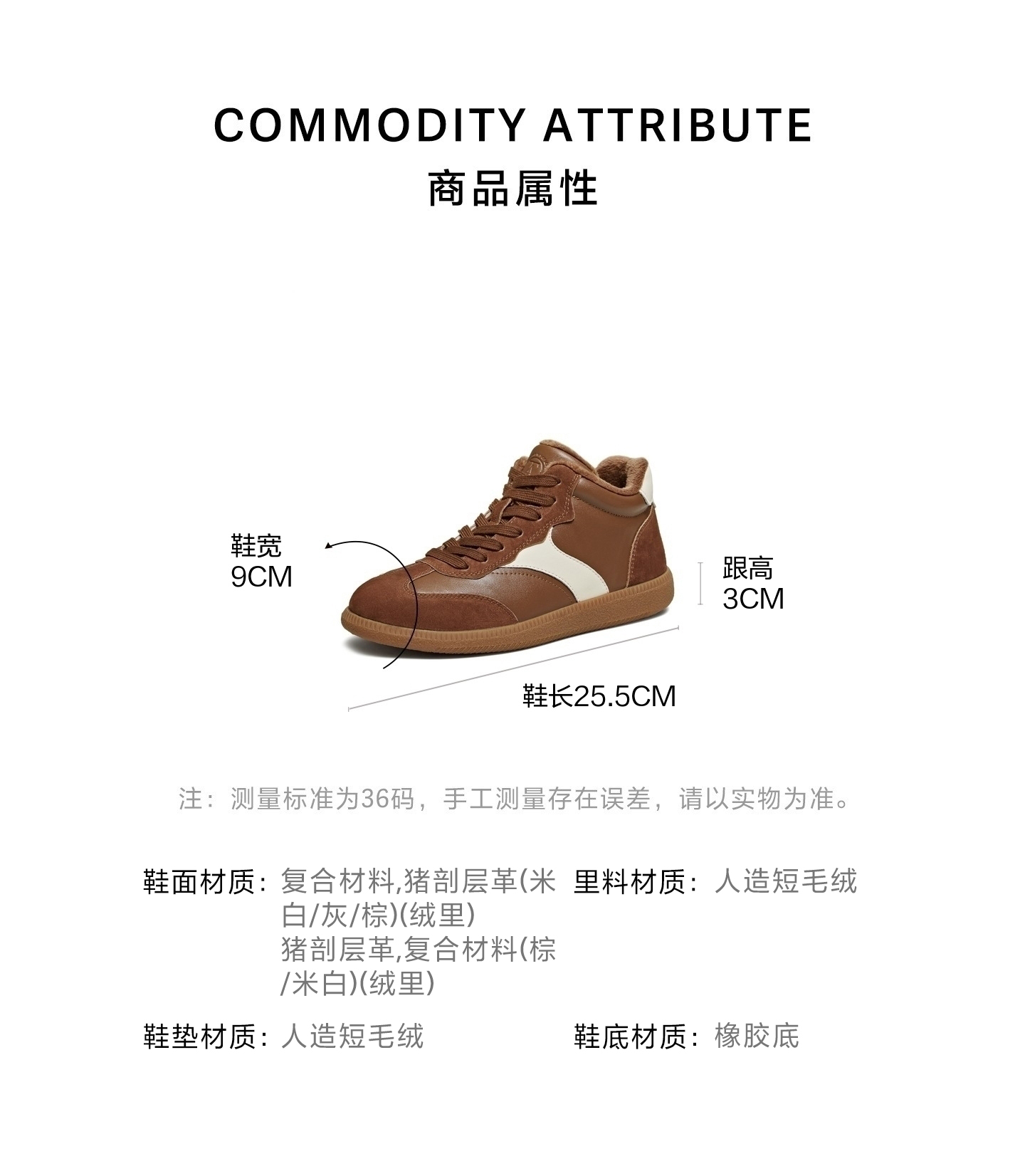 | 鞋跟形状:厚底 | 参考鞋长(女):25.5CM | 流行元素:拼色 | 参考鞋宽(女):9CM | 风格:休闲 |