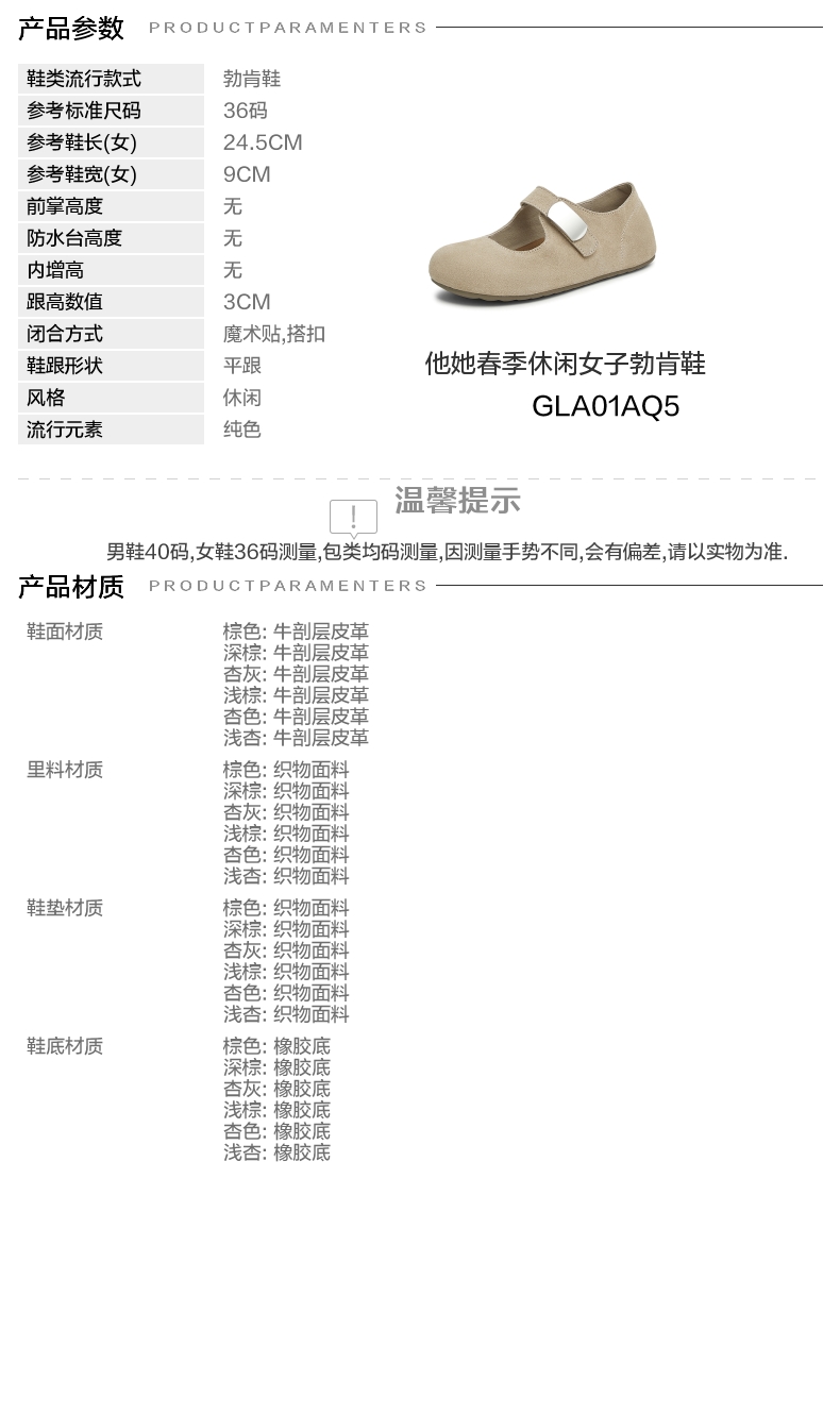 | 生产/经销/进口厂家:丽荣鞋业(深圳)有限公司 | 鞋类流行款式:勃肯鞋 | 鞋头款式:圆头 | 执行标准:舒适上班鞋Q/LR001-2023 | 跟高范围:中跟鞋(3-5CM) |