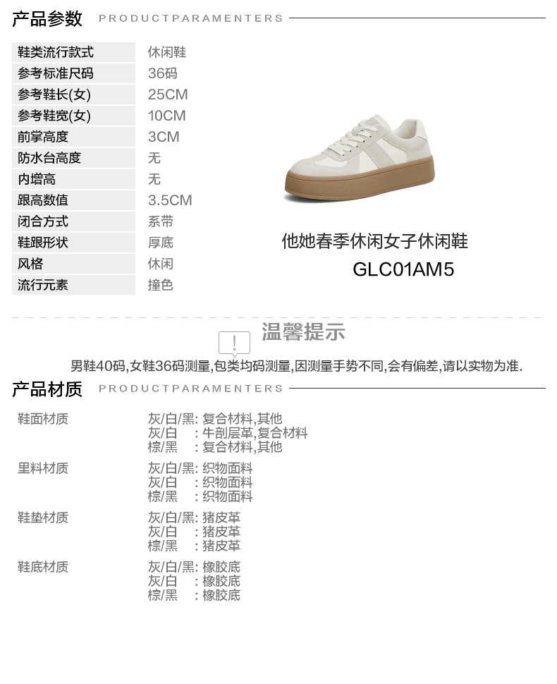 | 风格分类:德训鞋 | 上市时间:2025年春季 | 生产/经销/进口厂家:丽荣鞋业(深圳)有限公司 | 鞋类流行款式:休闲鞋 | 鞋头款式:圆头 |