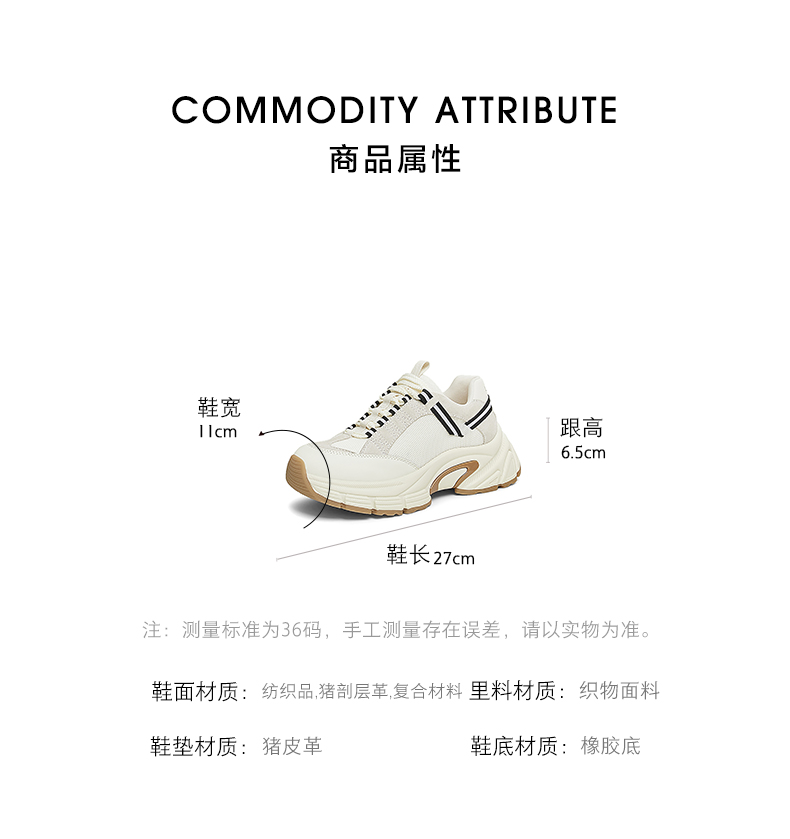 | 配跟:有 | 上市时间:2025年春季 | 鞋类流行款式:老爹鞋 | 鞋头款式:圆头 | 鞋面图案:纯色 |