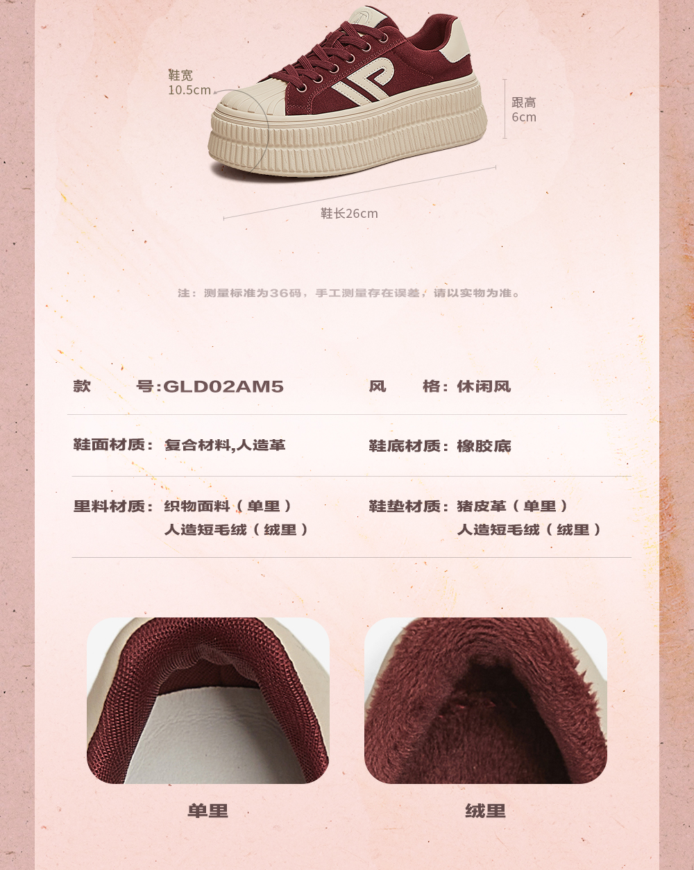 参考标准尺码:36码 跟高数值:6CM 性别:女子 里料材质:人造短毛绒 制鞋工艺:胶贴皮鞋