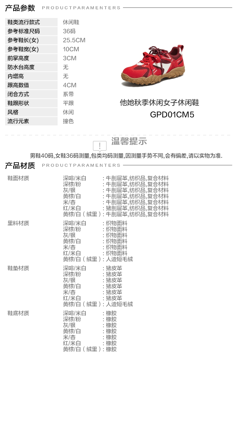 | 鞋跟形状:平跟 | 参考鞋长(女):25.5CM | 流行元素:撞色 | 参考鞋宽(女):10CM | 风格:休闲 |