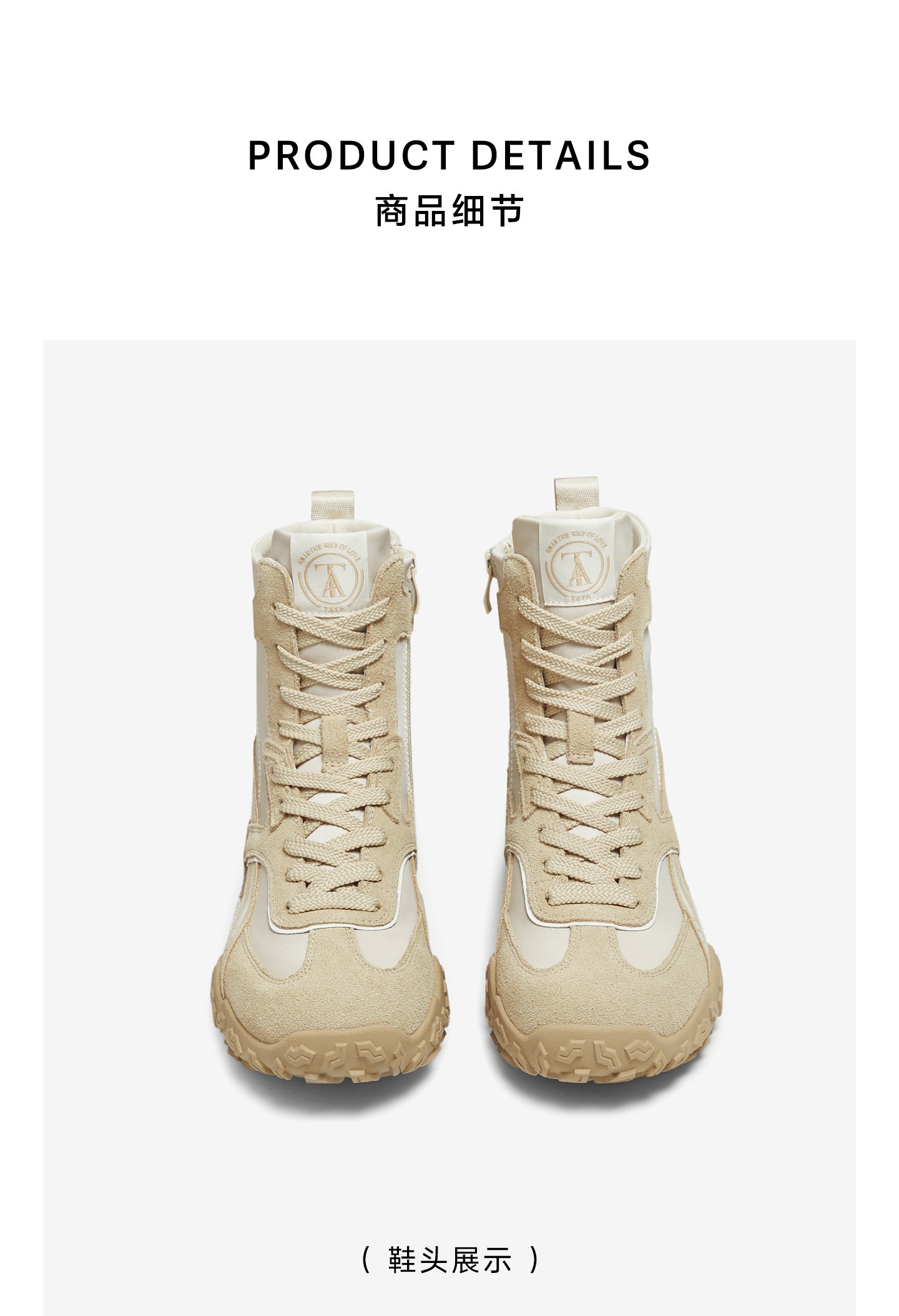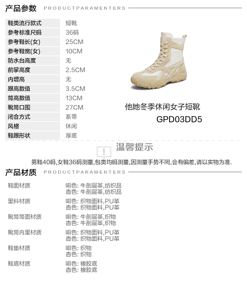 | 帮面材质:织物牛剖层革 | 配跟:无 | 靴筒口围:27CM | 上市时间:2025年冬季 | 鞋类流行款式:短靴 |