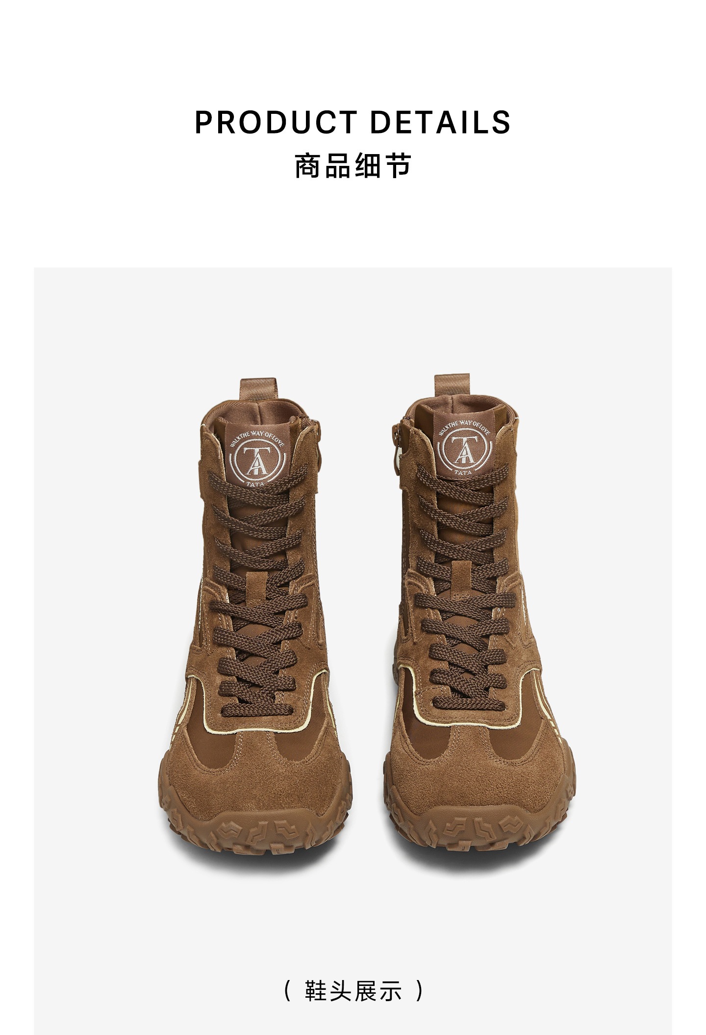 他她(Tata),品牌成立于2003年,致力为都市年轻人群提供时尚潮流、具有性价比的鞋履产品。十五年来“踏踏”的着地声,寓意都市白领元气满满的生活,如时尚“伴履”的TATA一直陪伴左右、伴随走出TATA的时尚步伐。2017年TATA美丽蜕变,TATA STAR元素的加入预示品牌将成为闪亮、前端的时尚鞋履品牌。