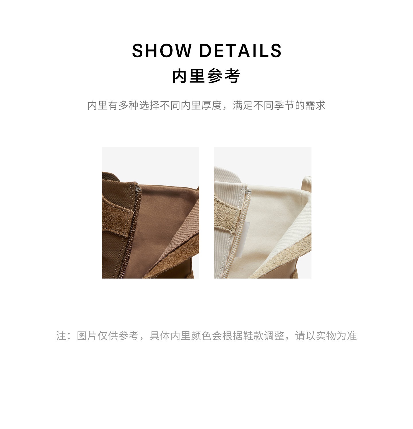 | 帮面材质:织物牛剖层革 | 配跟:无 | 靴筒口围:27CM | 上市时间:2025年冬季 | 鞋类流行款式:短靴 |