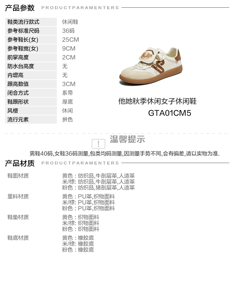 | 色系:米色 | 跟高数值:3CM | 性别:女子 | 里料材质:PU革织物面料 | 制鞋工艺:胶贴皮鞋 |