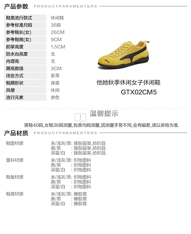 | 鞋跟形状:厚底 | 参考鞋长(女):26CM | 流行元素:拼色 | 参考鞋宽(女):9CM | 风格:休闲 |