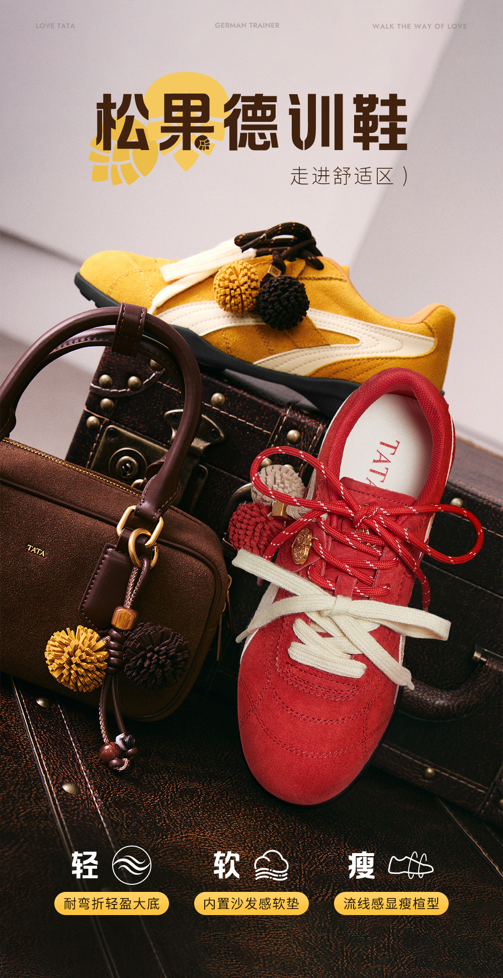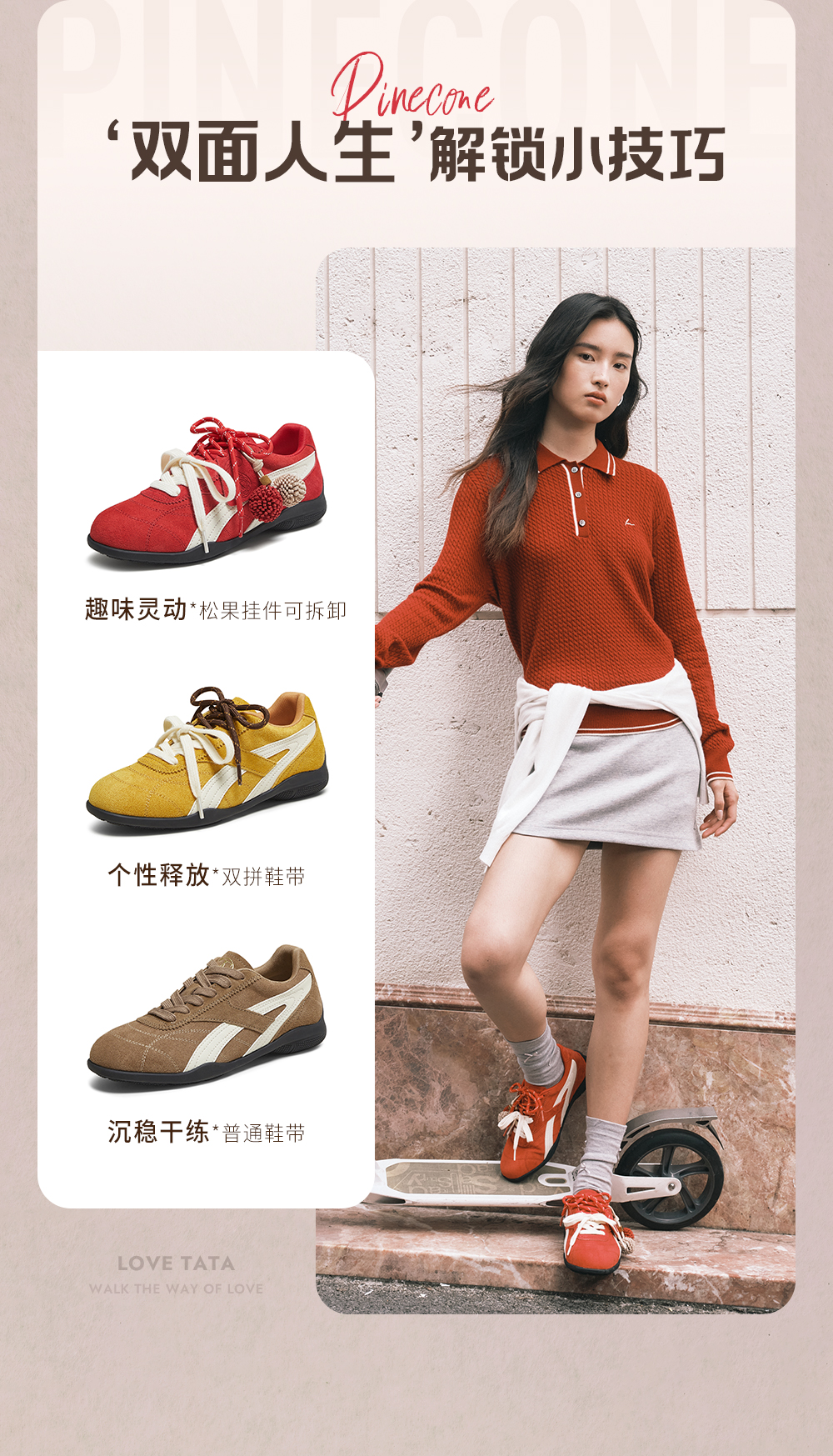 他她(Tata),品牌成立于2003年,致力为都市年轻人群提供时尚潮流、具有性价比的鞋履产品。十五年来“踏踏”的着地声,寓意都市白领元气满满的生活,如时尚“伴履”的TATA一直陪伴左右、伴随走出TATA的时尚步伐。2017年TATA美丽蜕变,TATA STAR元素的加入预示品牌将成为闪亮、前端的时尚鞋履品牌。