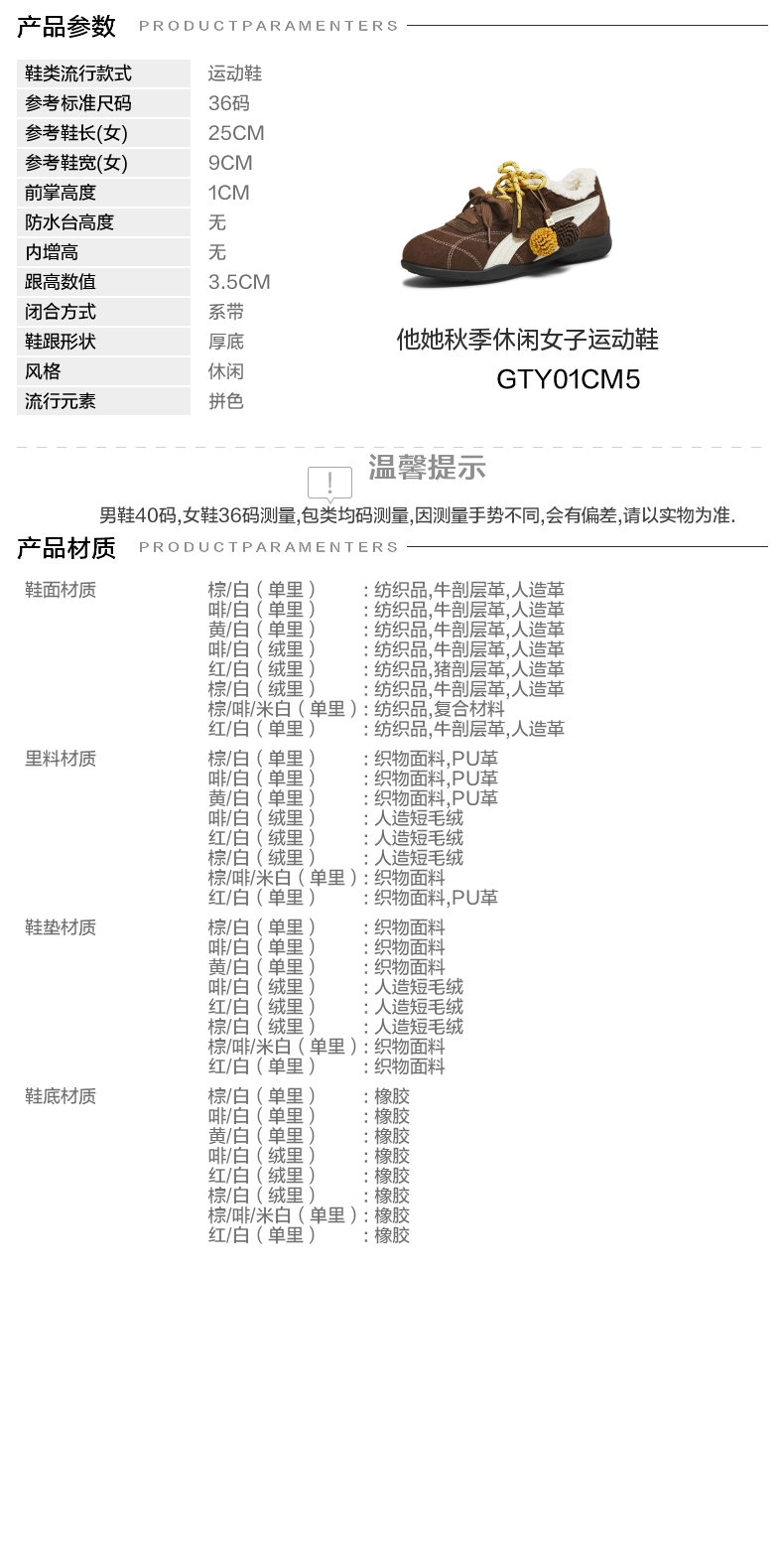 | 鞋跟形状:厚底 | 参考鞋长(女):25CM | 流行元素:拼色 | 参考鞋宽(女):9CM | 风格:休闲 |