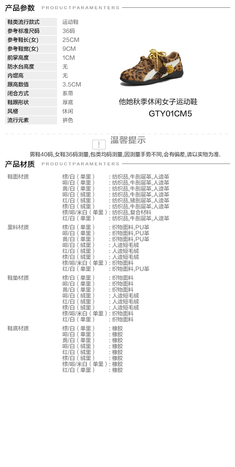 | 鞋跟形状:厚底 | 参考鞋长(女):25CM | 流行元素:拼色 | 参考鞋宽(女):9CM | 风格:休闲 |