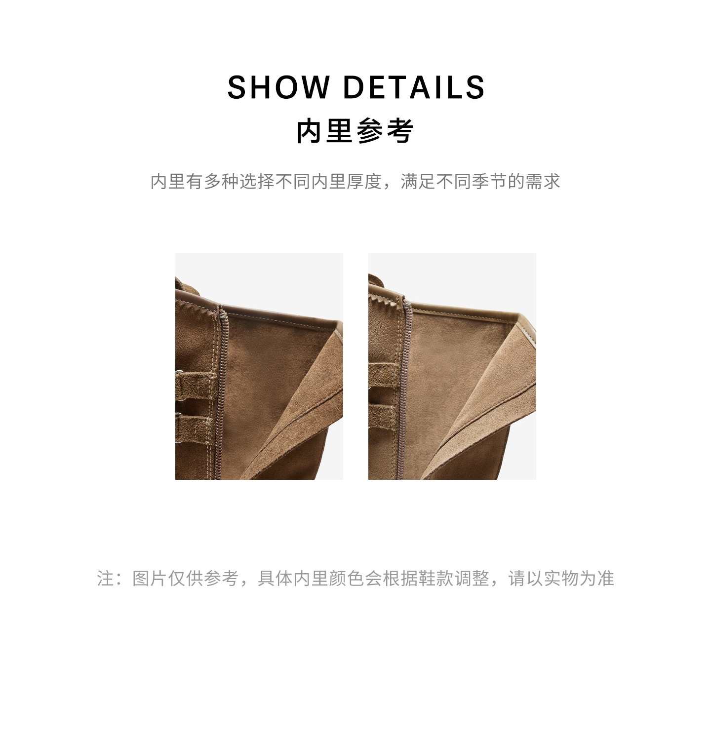 | 靴筒筒面材质:复合材料织物牛剖层革 | 靴筒小腿围:30CM | 里料材质:织物面料PU革 | 制鞋工艺:胶贴皮鞋 | 鞋垫材质:织物面料 |