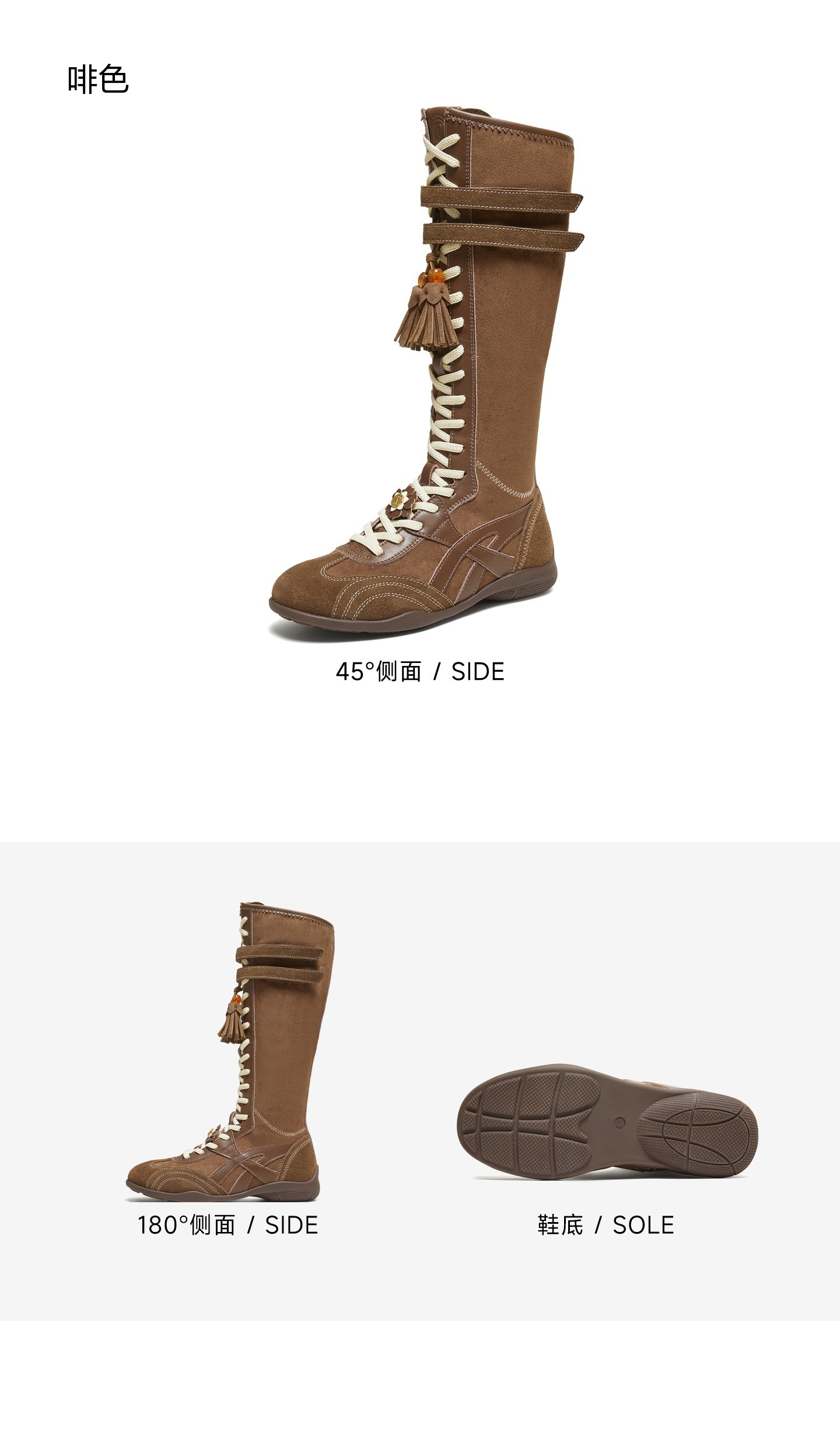 | 风格:休闲 | 色系:咖啡色 | 跟高数值:3CM | 性别:女子 | 筒高数值:34CM |