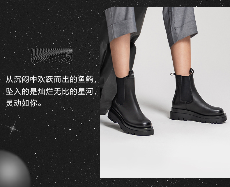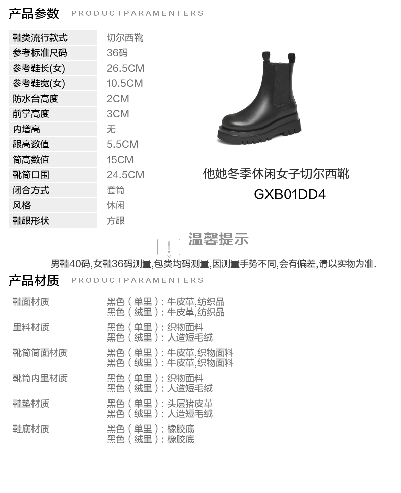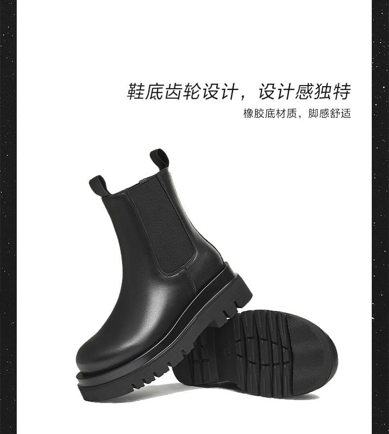 | 帮面材质:织物牛皮革 | 配跟:有 | 靴筒口围:24.5CM | 上市时间:2024年冬季 | 鞋类流行款式:切尔西靴 |