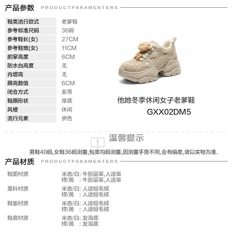 | 配跟:有 | 上市时间:2025年冬季 | 鞋类流行款式:老爹鞋 | 鞋头款式:圆头 | 鞋面图案:拼色 |