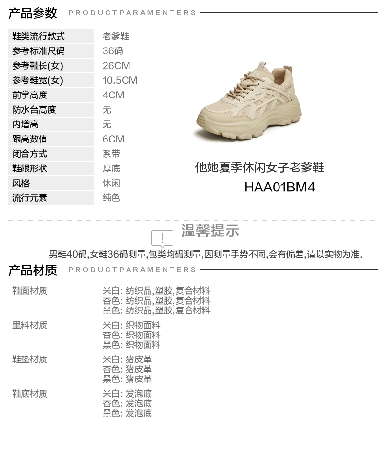 | 配跟:无 | 上市时间:2024年夏季 | 鞋类流行款式:老爹鞋 | 鞋头款式:圆头 | 鞋面图案:纯色 |