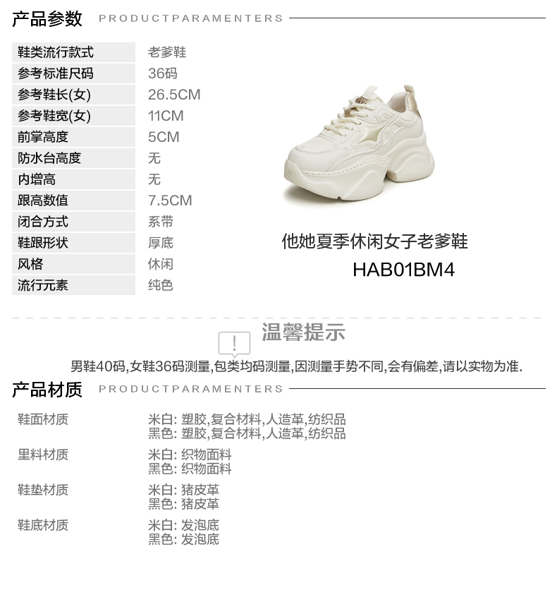 | 配跟:无 | 上市时间:2024年夏季 | 鞋类流行款式:老爹鞋 | 鞋头款式:圆头 | 鞋面图案:纯色 |