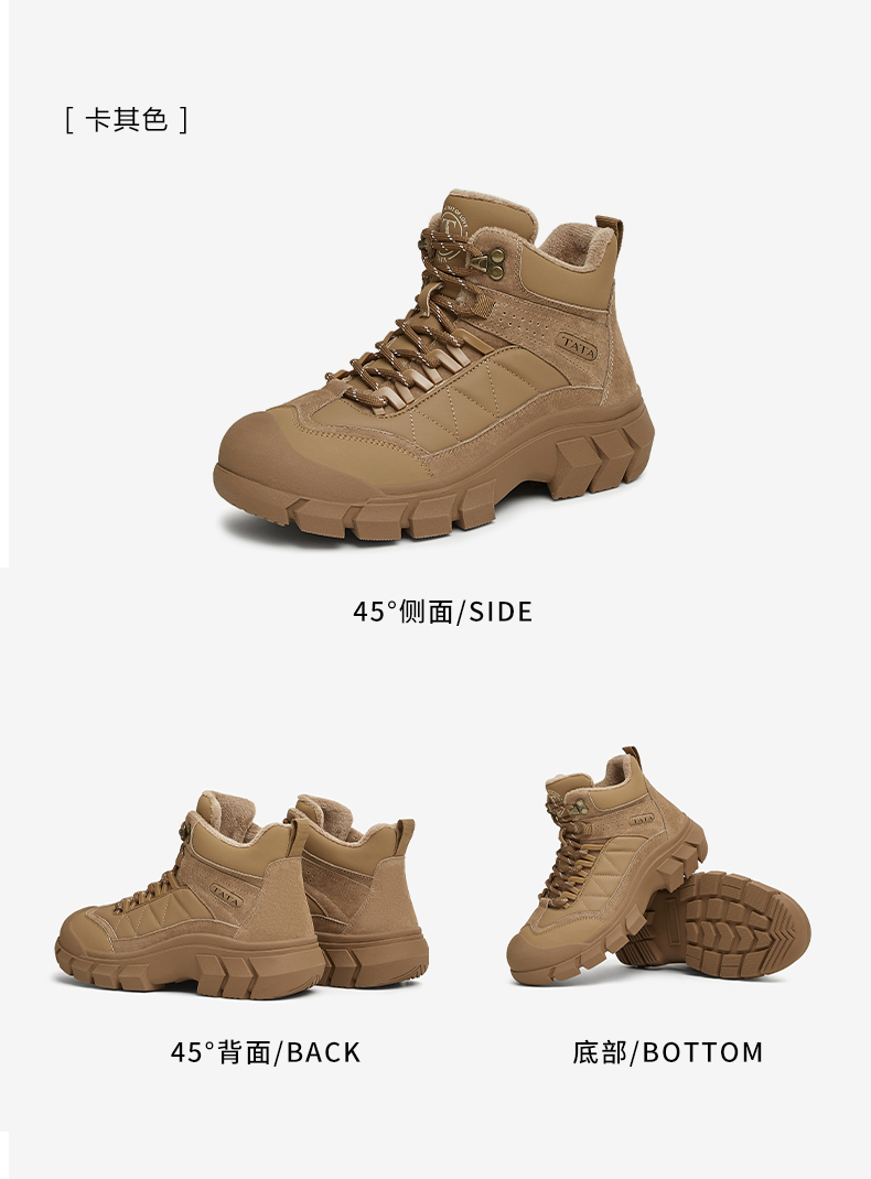 | 鞋底材质:橡胶底 | 靴筒内里材质:人造短毛绒 | 内增高:无 | 鞋面材质:人造革复合材料猪剖层革 | 适用场合:日常休闲 |