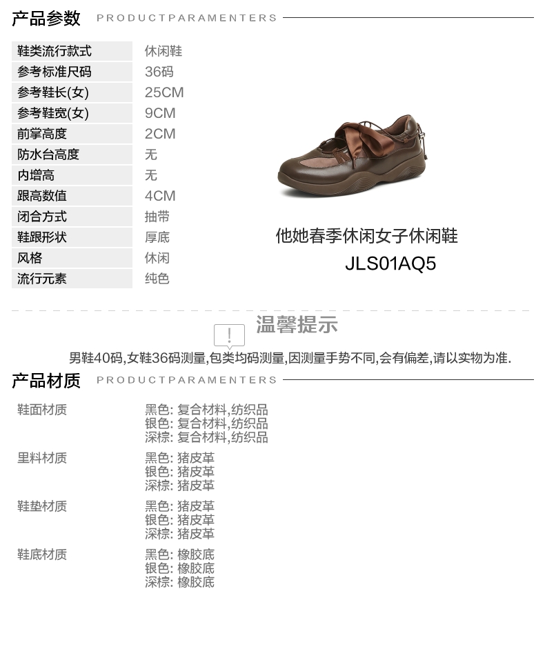 | 参考鞋宽(女):9CM | 风格:休闲 | 年份:2025年 | 色系:黑色 | 参考标准尺码:36码 |