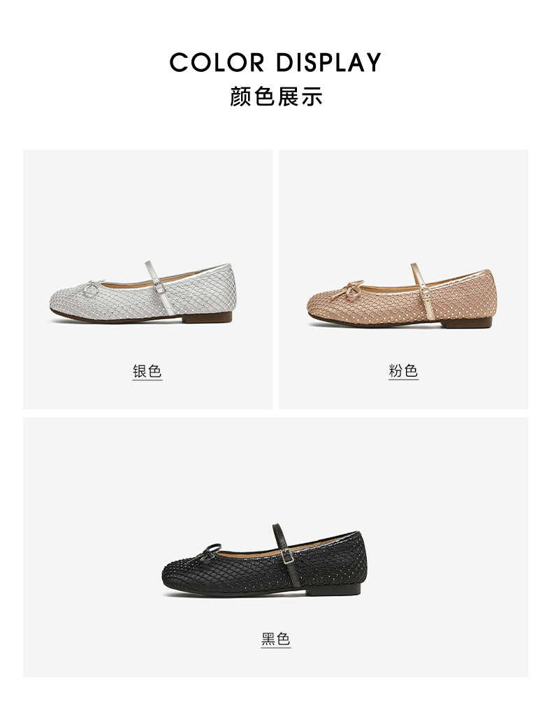 | 闭合方式:搭扣 | 所在区域:电子商务 | 配跟:无 | 开口深度:浅口 | 风格分类:玛丽珍鞋 |