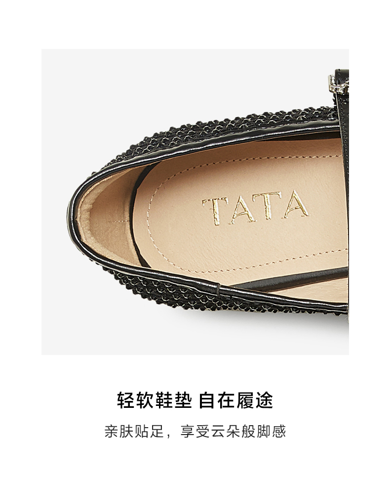 他她(Tata),品牌成立于2003年,致力为都市年轻人群提供时尚潮流、具有性价比的鞋履产品。十五年来“踏踏”的着地声,寓意都市白领元气满满的生活,如时尚“伴履”的TATA一直陪伴左右、伴随走出TATA的时尚步伐。2017年TATA美丽蜕变,TATA STAR元素的加入预示品牌将成为闪亮、前端的时尚鞋履品牌。