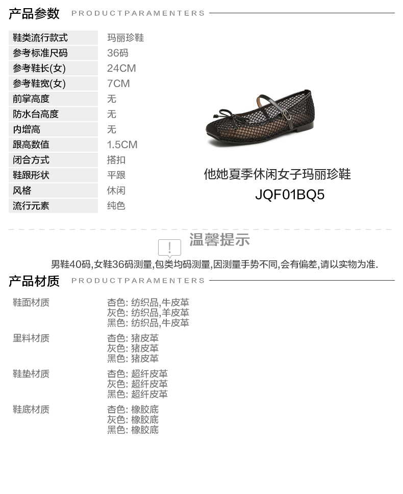 | 上市时间:2025年夏季 | 生产/经销/进口厂家:丽荣鞋业(深圳)有限公司 | 鞋类流行款式:玛丽珍鞋 | 鞋头款式:圆头 | 执行标准:舒适上班鞋Q/LR001-2023 |