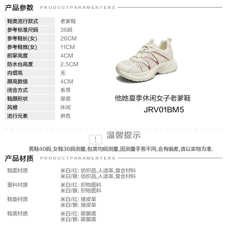 | 配跟:无 | 上市时间:2025年夏季 | 鞋类流行款式:老爹鞋 | 鞋头款式:圆头 | 鞋面图案:拼色 |
