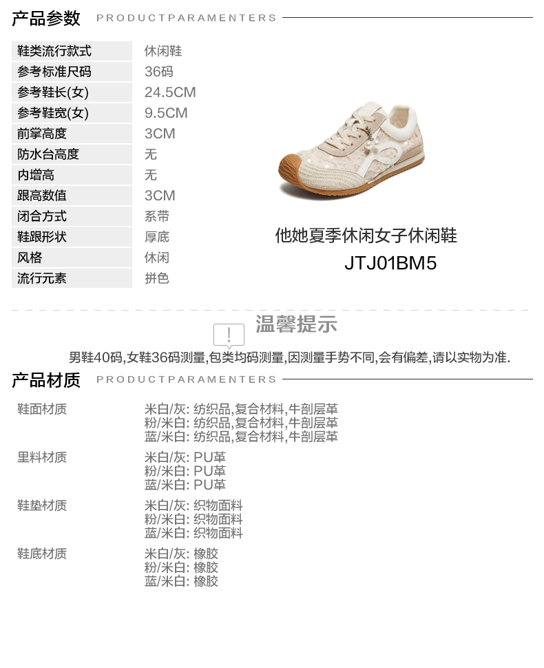 | 鞋跟形状:厚底 | 参考鞋长(女):24.5CM | 流行元素:拼色 | 参考鞋宽(女):9.5CM | 风格:休闲 |