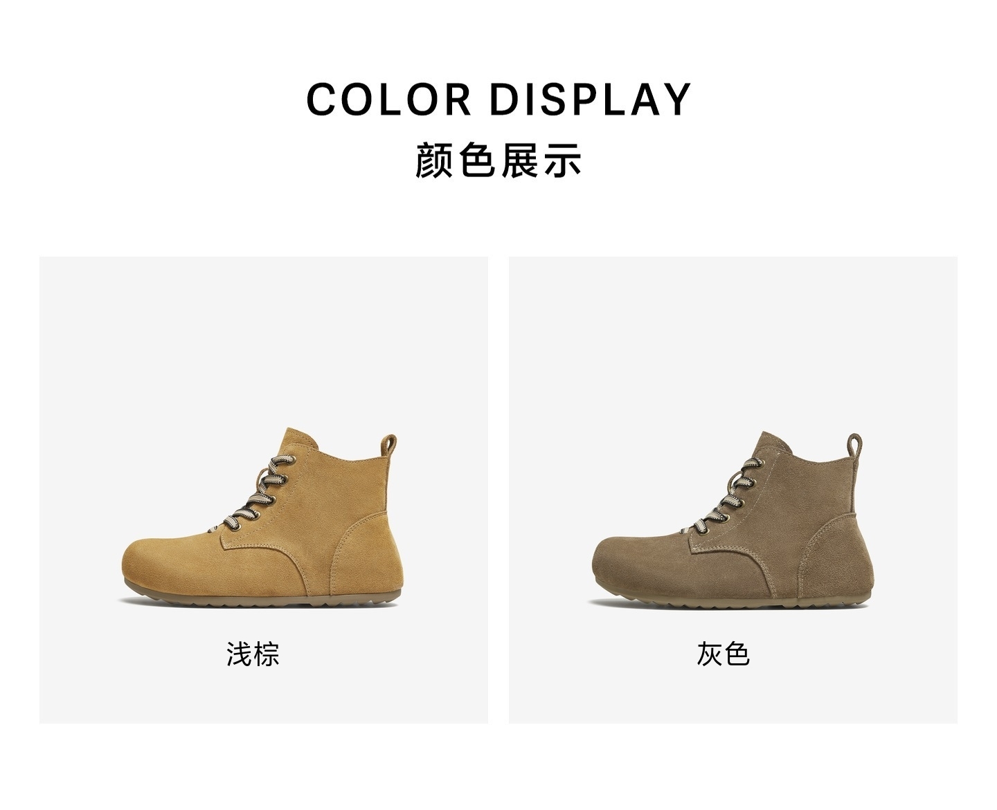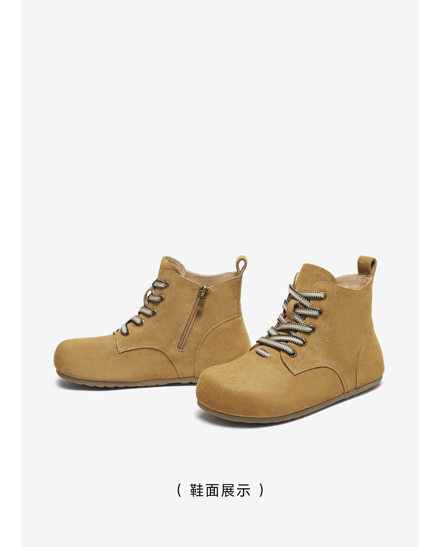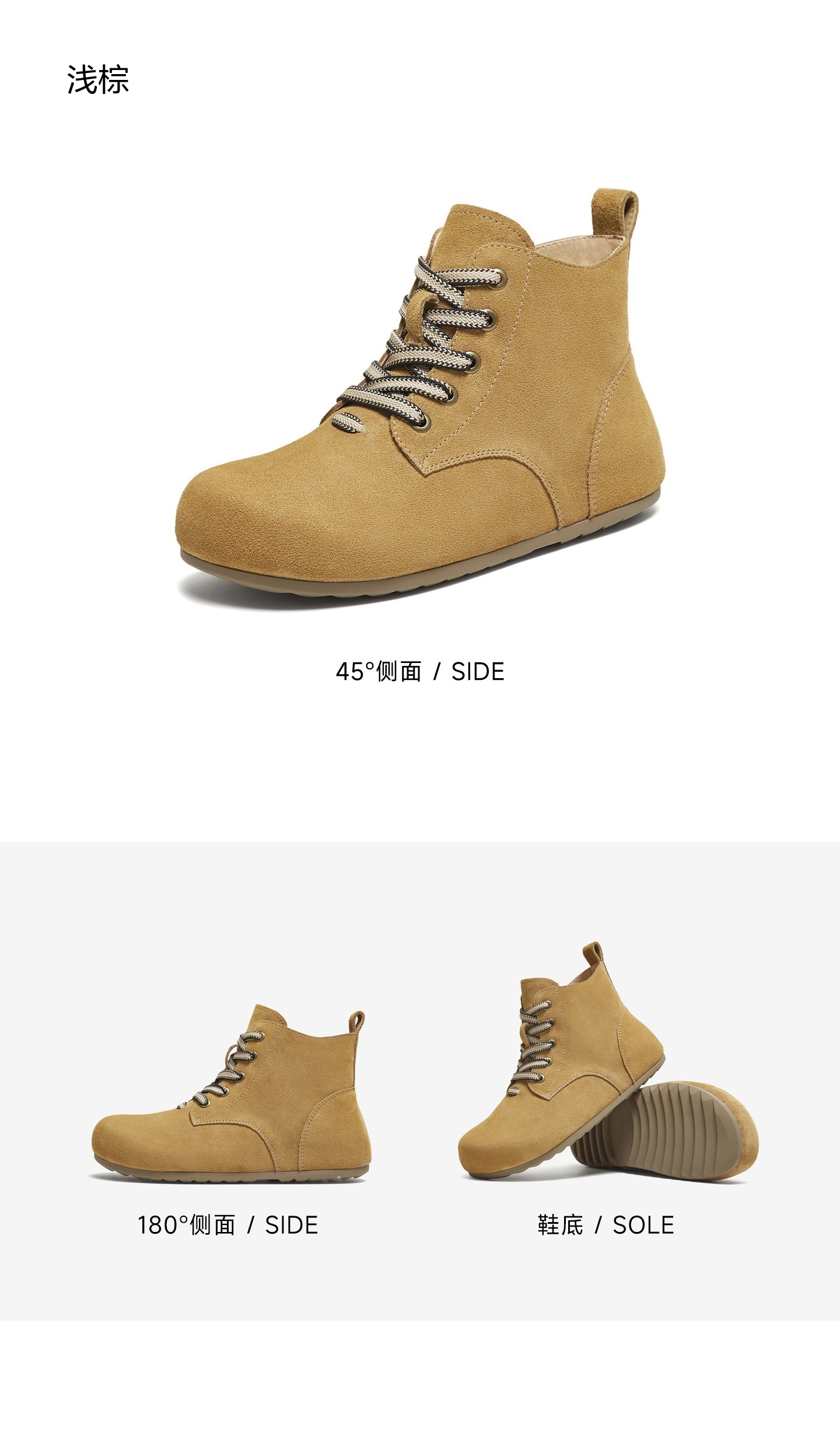| 鞋底材质:橡胶底 | 靴筒内里材质:猪皮革织物面料 | 内增高:2CM | 鞋面材质:牛剖层革 | 闭合方式:系带侧拉链 |