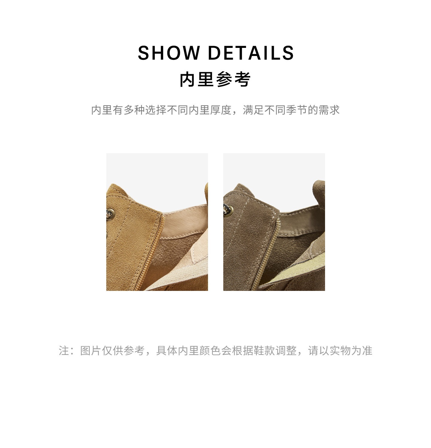 | 帮面材质:牛剖层革 | 配跟:无 | 靴筒口围:27CM | 上市时间:2025年冬季 | 鞋类流行款式:勃肯鞋 |