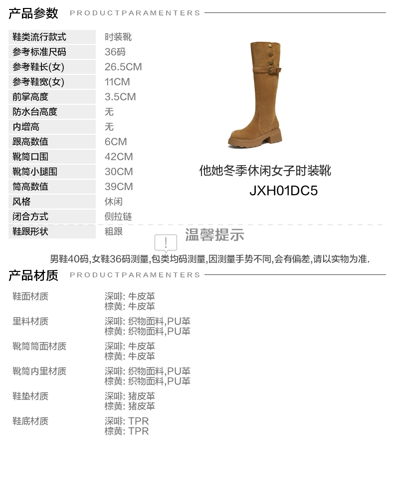 | 配跟:有 | 靴筒口围:42CM | 上市时间:2025年冬季 | 鞋类流行款式:时装靴 | 鞋头款式:圆头 |