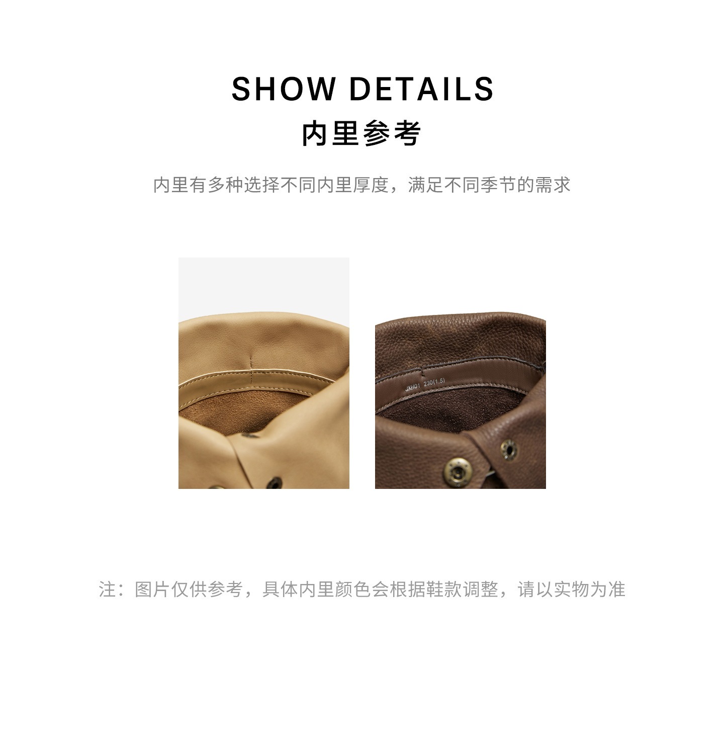 | 靴筒筒面材质:牛皮革 | 靴筒小腿围:30CM | 里料材质:PU革织物面料 | 制鞋工艺:胶贴皮鞋 | 鞋垫材质:猪皮革 |