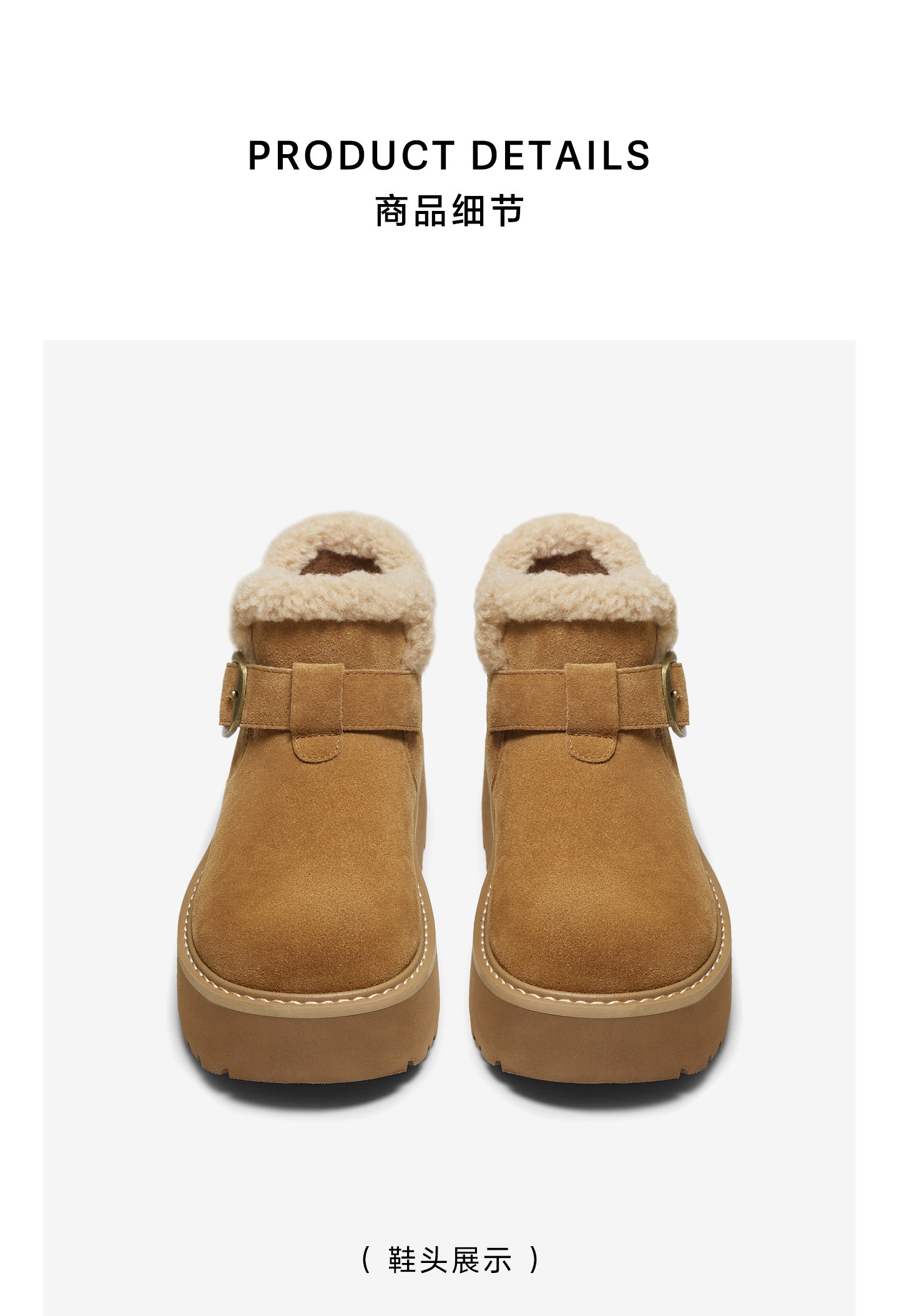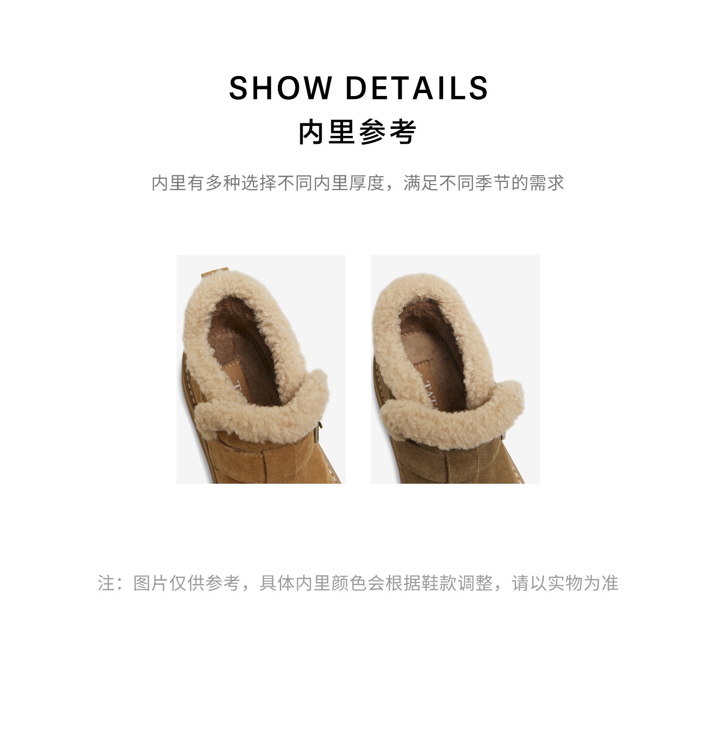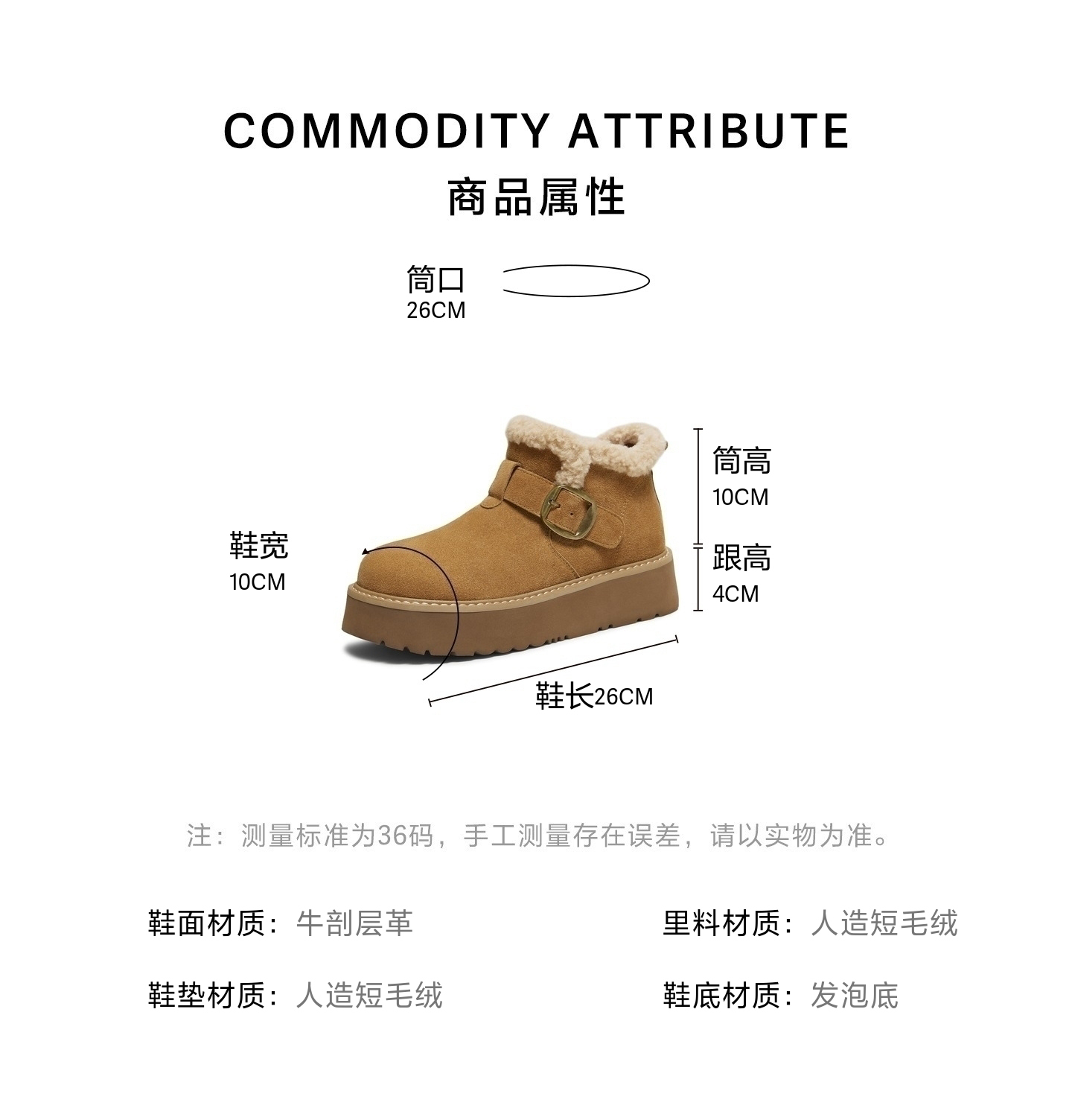 | 帮面材质:牛剖层革 | 配跟:无 | 靴筒口围:26CM | 上市时间:2025年冬季 | 鞋类流行款式:雪地靴 |